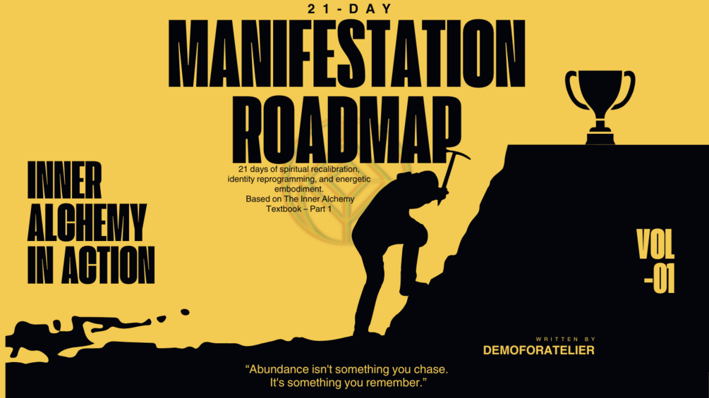 A 21-day alchemical sprint — spiritual recalibration meets action. Dive into 21 days of energetic embodiment, identity reprogramming, and real-world alignment. Based directly on Inner Alchemy Atelier – Part 1, this is your practical transformation map. No fluff. Just depth, direction, and daily embodiment.